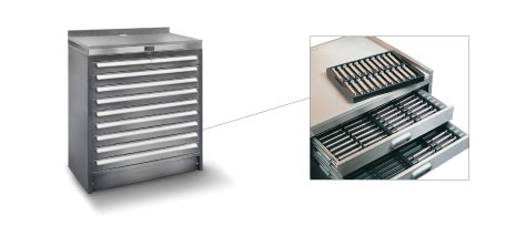 TOOL STORAGE SYSTEM is a fabricated S.S. cupboard which stores and protects the Tooling’s for any Damages and provides a ease for Inventory Management.